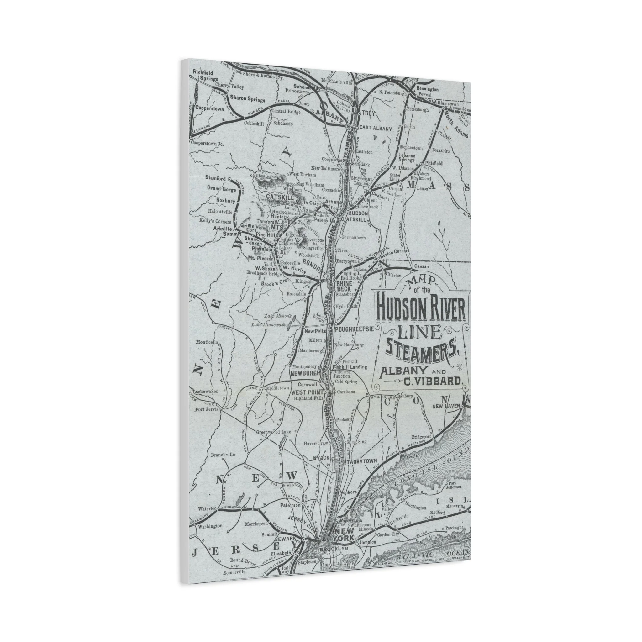 Hudson Valley Merch › Hudson River Steamboats Historic Map on Canvas Hudson River Steamboats Historic Map on Canvas $72.00 Celebrate the past with this 24"x36" canvas map of 1883's Hudson River Line Steamers. Celebrate the past with this 24"x36" canvas map of 1883's Hudson River Line Steamers. Quantity: Add To Cart Added!
