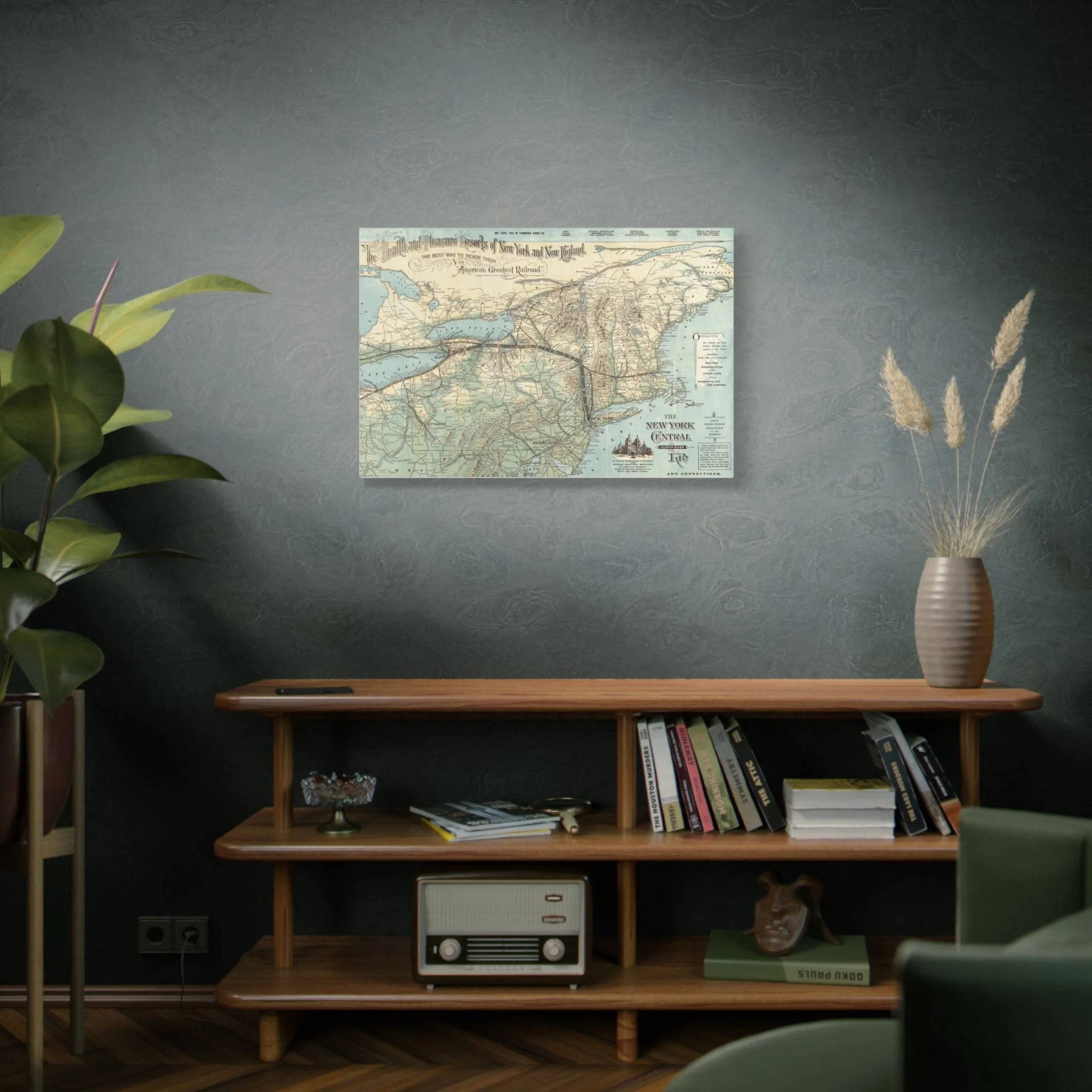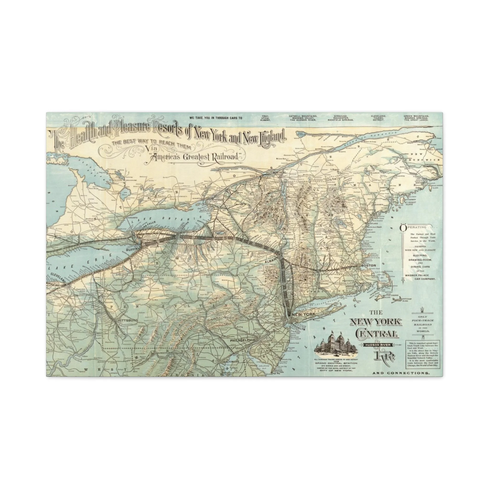 Celebrate the past with this 36"x24" canvas of the 1893 New York Central Railroad, specifically its routes along the Hudson River.